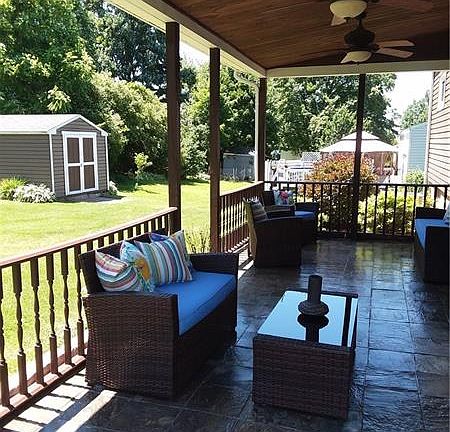 Super Turn key ranch home boasts newer: Siding, exterior and interior wood doors and trim, new carpet and entry tile, new hardwood in kitchen and dining room, new outlet receptacles and switches, replaced all ceiling light fixtures, renovation of kitchen and bathroom, insulated all exterior walls, new furnace and hot water tank, New retaining wall and extended driveway, New front porch and back patio with gorgeous slate flooring, ceiling fan on patio, added storage shed, new landscaping and new French drain at rear of property, Freshly painted exterior and garage.