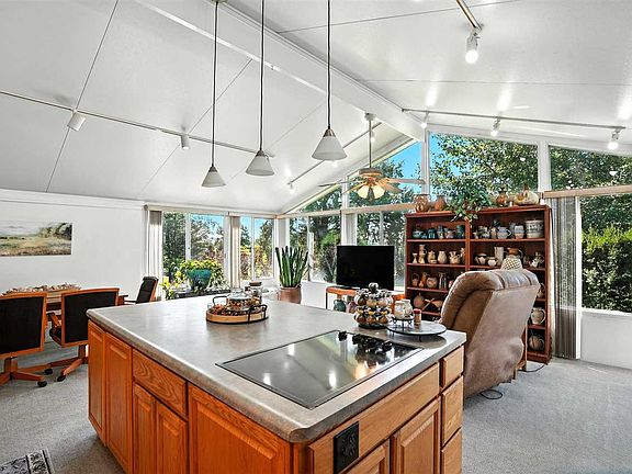 Stone fireplaceGrand sunroomHalf-acre lotLarge non-conforming bedroomVersatile spaceOak cabinetryGenerous closet space