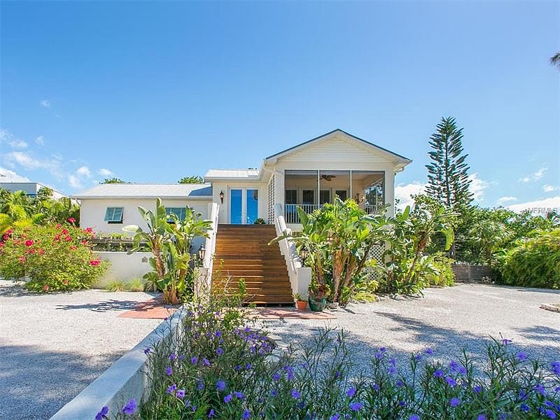 You can't get much better in terms of location! Mere steps from the beach, this large slice of paradise can be yours! This wonderful move-in ready 2 bedroom/2 bath home sits on an oversized lot where you can craft the garden of your dreams with the only limit being your imagination! There is plenty of room to grow - picture yourself relaxing in your new custom designed pool surrounded by lush tropical landscaping; or maybe your vision includes gathering with friends on an extended deck with fire-pit while watching the sunset...the possibilities for this property are endless! The home itself is beautifully appointed with tile throughout, stone countertops, a fireplace in the living room, a spacious screened lanai from which you can see the aquamarine waters of the Gulf of Mexico, and there is even a private outdoor shower area to rinse off after enjoying a dip in the Gulf! Come see this property and fall in love with this piece of tropical bliss!