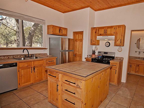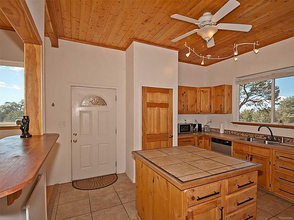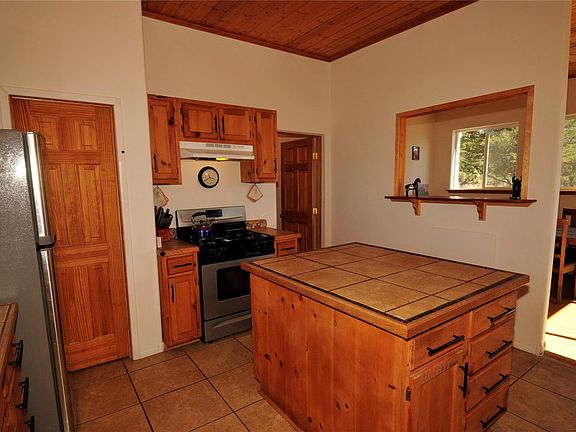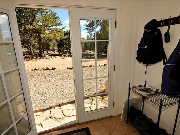 Quality and non-toxic finishes with mountain and valley views, energy efficient, and location! Cushioned bamboo floors, large office, large master with walkout wraparound, maintenance free deck. Propane fired in-floor radiant heat with backup electric system and wood stove. Spacious kitchen, 3 baths, 3 bedrooms. Office could serve as 4th bedroom. Downstairs 1/2 bath includes washer/dryer. Solid wood kitchen cabinets with linseed oil finish. On demand hot water heaters fuel household hot water and heating needs. Tile stalls in both full baths. Home is fully insulated with hard cell foam in walls and ceiling; insulated foundation. Two car carport. One acre corner lot on paved road. Close to greenbelt trail and park. Landscaping includes circular drive and numerous beautiful pinion pines. This well built home, at over 2000 square feet offers an excellent value and the prospect of years of carefree living. Motivated seller.