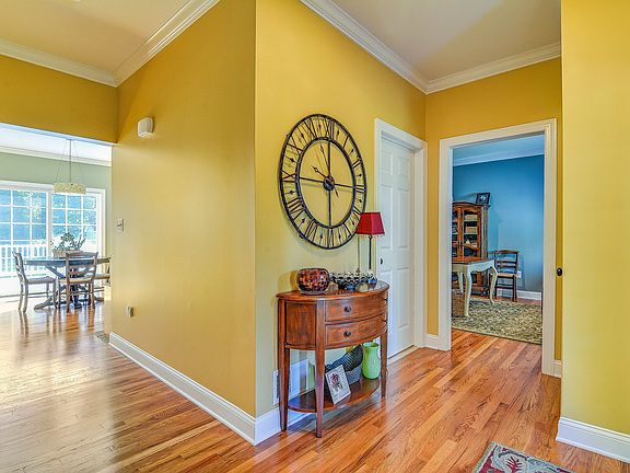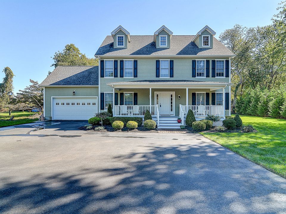 Privacy abounds this custom contemporary colonial**built 2010** barely ''lived'' in**Exterior of home w/front shutters, sprinkler front & back, storage shed**property sits back over 200' from road**open front porch (trex)**two-story entry; 1st level w/9' ceilings**hardwood flooring 1st level, staircase and 2nd floor hallway* custom moldings**high hats** vacuum system** one(1) solid garage dr.** kit.w/42''hardwood kitchen cabs.,ivory colored w/glazed inserts, finished panels @ each end; granite counter-tops, stainless steel appliances, Dacor range & microwave, double sink, large center island w/storage and outlets**gas fireplace F/R**custom shades**3rd level 40x12 finished for playroom, extra bedrooms**2-zone heat/air**backyard w/storage shed & room for pool**
