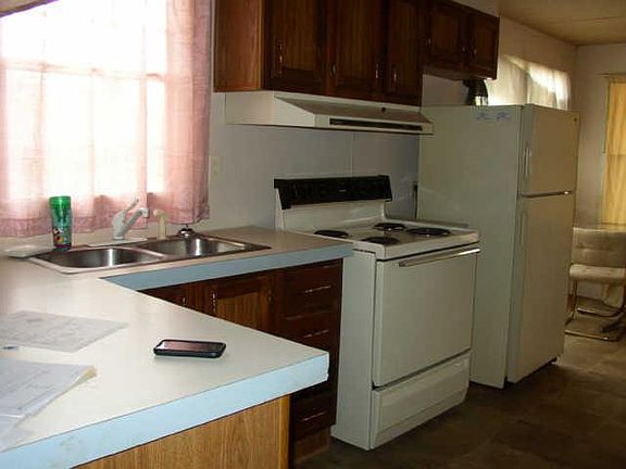 Enjoy the wrap around porch on this 3 BR/2 bath mobile home on permanet foundation. MBR has garden tub. LR features a fireplace. Appliances stay, including washer & dryer.