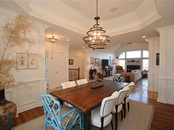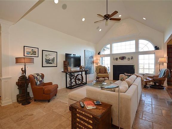 Amazing stone house- upscale amenities and lush professional landscaping make this home better than new. Soaring ceilings, Travertine flooring and Brazilian Walnut IPE floors. Main level has TWO Master bedroom en suites-one on each side of the house- bedroom, California closet, and full bath. Fab Great Room -Jaw dropping custom woodwork surrounding Palladium windows & fireplace. Open floor plan allows easy access to chef's kitchen featuring high end appliances and cabinets; tiered ceiling, dinette area, & large sliding door to enjoy the super Trex deck. Spacious open Dining Room w/contemporary chandelier. Convenient den. Handy laundry room accesses oversize 2 car attached garage. Lower level boasts an enormous GameRoom complete w/wet bar area, wine refrig & dishwasher. Snuggle up with a good book in front of stone fireplace or enjoy great conversation in the sitting area. Private third bedroom & full bath for guests. Tiered Media Room to cheer on your favorite sports teams. !!Storage!!