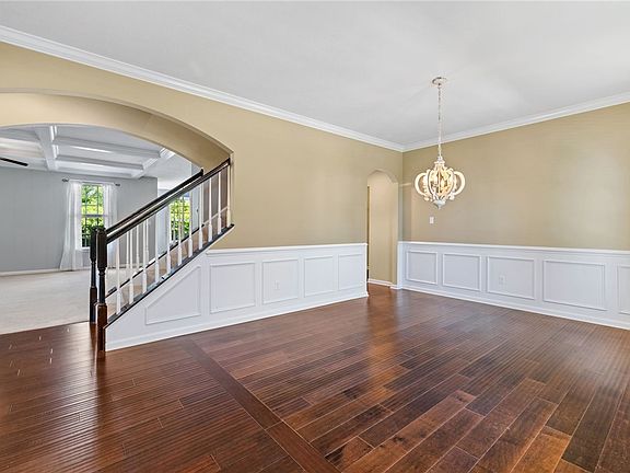 Welcome to Fulton Crossing! This home will wow you the minute you step into the Foyer/Dining room with trendy lighting, arched doorways, French doors lead to a private Den and a fabulous Open Floor Plan! Gorgeous engineered hardwood flooring and large rooms are the absolute must of todays desired lifestyle! A beautiful kitchen w/huge center island, breakfast area, stainless appliances, granite counters & a big pantry is all here! The Family room is open yet cozy w/gas fireplace and coffered ceiling w/ceiling fan. The primary suite will wow you with one of the largest closets ever! Spa bath has tile & double vanities. Three additional bedrooms and hall bath with double sinks. Upstairs laundry room for added convenience. There is an enormous deck looking into green space and a great back yard! The spacious game room is absolutely wonderful w/gorgeous bar, beverage fridge, granite counters, kegerator & a shiplap wall is super cool! Safe included! Walk out onto a spacious patio and enjoy!