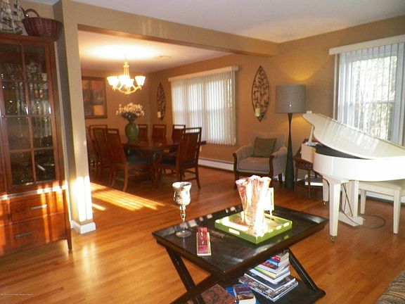 THIS IS IT!! Beautiful raised ranch situated on 1.75 acres in desirable Freehold Twp. This home features hardwood and ceramic floors throughout living room, dining room, family room and kitchen. The large master bedroom features a spacious updated bathroom, there are 3 nice size bedrooms and another full bathroom. French doors lead down to a finished basement with a private office, living area, full bathroom, bar and woodburning fireplace. Separate storage area with walkout to backyard. Enjoy entertaining in your private oasis with deck overlooking large inground pool and hot tub. 3 car detached garage makes this a great location for small business!! Newer furnace, Roth safety above ground oil tank, 2yr roof. Close to all major highways, commuting, shopping and great schools!!!