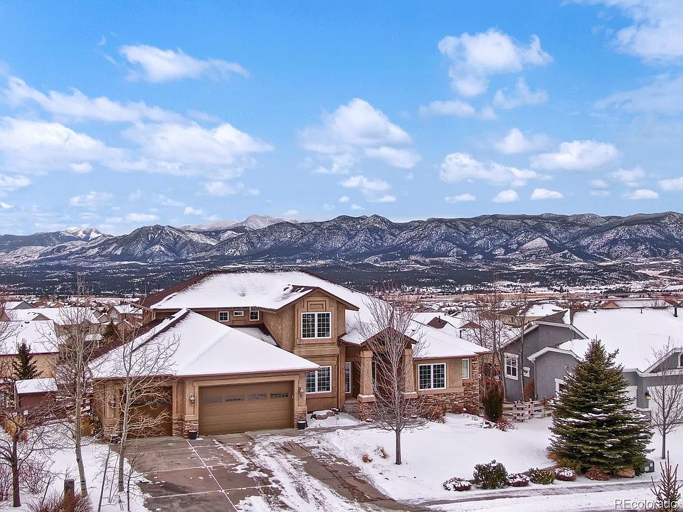 Luxury living in close proximity to all Monument has to offer, this beautifully maintained home in Homestead at Jackson Creek has too many upgrades to list. In the bright and open living area, enjoy the mountain views and the warmth of a two-sided fireplace. The gourmet kitchen features Corian counter tops, double ovens, cozy fireplace, with plenty of room for an over sized farm table. The main level master suite features a two-sided fireplace, double walk in closets and spectacular mountain views. Walk out to the private deck to enjoy those views, fenced back yard and a bonus storage shed. Upstairs, 2 of the comfortable bedrooms connect with a Jack & Jill full bath. A 3rd bedroom upstairs has a private 3/4 bath. The bright walk out basement features a fireplace, wet bar and climate controlled wine cellar. In addition to being beautifully maintained, this home features a brand new roof with 40 year impact resistant shingles, new gutters and soffits and newer water heater. 2 ACs & 2 furnaces keep the house comfortable year round.