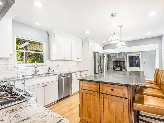 Beautiful ranch in Seneca Valley School District, on nearly half an acre. Amazing kitchen features a huge center island with soapstone countertop, white cabinets, granite countertop, stainless appliances, and a beer/wine fridge. Kitchen is open to the dining area and living room, providing a great space for everyday living or entertaining. A full bath and 3 bedrooms complete the main level. Finished lower level includes a family room with wood burning fireplace insert, laundry room, storage room, and 4th bedroom, with attached full bath. This flexible area could function as an owner's suite, play room, exercise area, or home office. Fantastic outdoor space has a large covered patio, an area set up for cooking out, and a lovely, flat yard. Two car attached garage. Concrete driveway. Two sheds. Furnace and Central air updated in 2020. Home warranty included. Walk to downtown Harmony. Easy access to I-79 and Route 19. Approximately 15 minutes to Cranberry and 30 minutes to Pittsburgh.