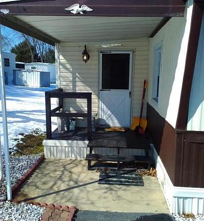 Quiet street and neighborhood close to all major highways!! Move right in to this roomy single wide with 2 bedrooms and 1 1/2 baths! A built on addition adds more space than your typical single wide. Nice sized screened in porch with attached patio, plenty of space to relax and enjoy company! Lot rent is $395/month and also includes trash, sewer, and snow removal. Must be park approved to live here