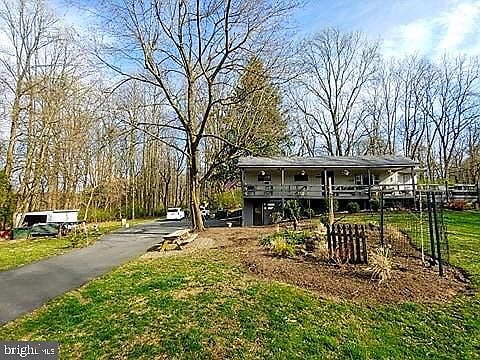 This beautiful country Raised Ranch sits on a picturesque, level 1.22 acre lot. Enter by driving up the gorgeous tree-lined driveway. The layout on the main floor consists of a living room with updated flooring, formal dining room, updated kitchen with painted cabinets and new flooring, a full bath, and 2 spacious bedrooms. The master bedroom is a great size and has a total of 5 closets for lots of storage space. The second bedroom is a very nice size as well. On the lower level is a finished family room complete with a wood-burning stove to keep the home warm and toasty on those cold nights. There is also a separate laundry room, a second full bath, and access to the oversized 2 car garage. Outside you can relax on one of the patios, the deck, or the perfect covered front porch overlooking the large front yard. A great setup for entertaining or simply enjoying all the peace and tranquility this property has to offer. The location is just a few minutes away from Antietam Lake Park, Stokesay Castle, Reading Liederkranz, Mountain Springs Captain's Cove restaurant, Angora Fruit Farm, Reading's Pagoda landmark, and plenty of wonderful hiking and biking trails. Don't miss the opportunity to own this charming, one-of-a-kind home!