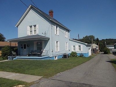 This well-maintained old colonial style 2 bedroom house is waiting for you to move in and start creating memories. It boasts a front porch for sitting on warm evenings and a side deck off the patio doors for your morning coffee. Eat-in kitchen, and extra room for either formal dining or office. Large spacious living room with decorative fireplace. Huge master bedroom and lots of closet and storage space. Large garage for your guy. Large corner lot.