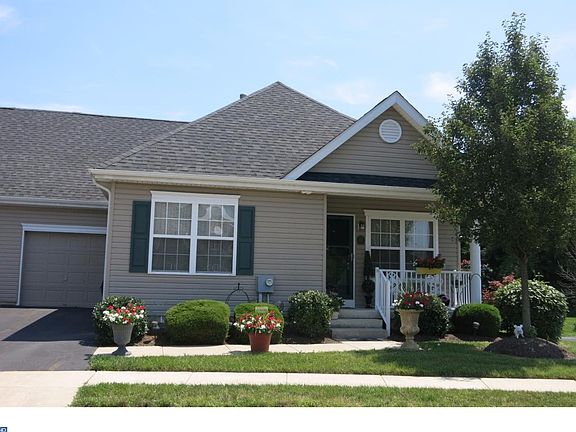 OPEN HOUSE Sunday October 1st 1:00-3:00. A RARE FIND in the popular 55+ community, The Villas at Chancellor's Glen! Only 8 years young, this bright and sunny TWIN is situated in an IDEAL LOCATION, on a larger than usual lot of .17 acres and offers views of SURROUNDING OPEN AREA. Pull right into the driveway from Harmony Court as this home does NOT have to share the driveway with 4 other homes! From the covered Front Porch, enter into the Living Rm/Great Rm featuring a dramatic Vaulted Ceiling. Gleaming HARDWOOD FLOORS extend into the Formal Dining Rm, a perfect spot for guest or family gatherings. Adjacent to the Dining Rm is an Eat In Kitchen boasting beautiful Upgraded 42" Kitchen Cabinets and a conveniently located first floor Laundry. The attached Garage not only has inside access but includes a door to exit to the Rear Yard, not found in the quads in the community. The Main Level Master Bedroom Suite includes a Walk In Closet, Linen Closet plus a full remodeled Bathroom with over sized Stall Shower. The Upper Level offers an additional Bedroom Suite with a generously sized FULL BATH, Walk In Closet and Linen Closet. Additionally, a 11'x10' finished Bonus Room has endless possibilities. This home has plenty of living space but if it isn't enough, a full basement includes an egress window to allow for finishing it or use it for extra storage space. Other outstanding features include a Central Vacuum System, wired for Security System and an Additional Window in the upper bath allowing for natural light. The Master Bedroom has new carpet and all carpeting is neutral throughout the home. The reasonable HOA fee includes use of the Clubhouse with plenty of activities, indoor pool, fitness equipment and meeting rooms. Let the association take care of the grass, trash and snow removal. Convenient to lots of shopping, restaurants, PA Turnpike, Route 1, I-95 and more! Enjoy an easier lifestyle with low maintenance living!