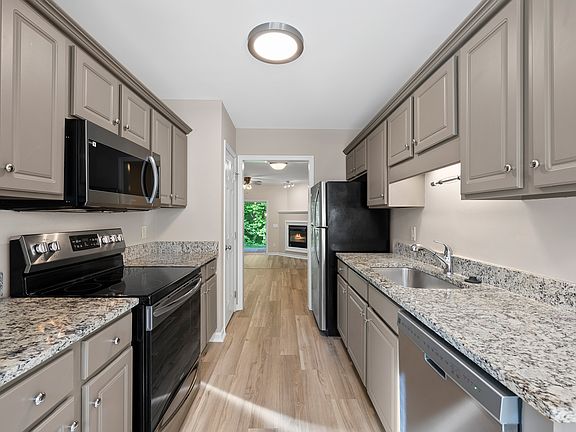 PRIVACY and PROXIMITY! Rare find townhome - intimate, quiet setting of just 16 homes all backing to woods and creek. Inside revel in BRAND NEW LVP FLOORING throughout entire home and brand new wall/trim paint throughout! Stylish kitchen with painted cabinetry, stainless appliances and granite countertops. Sunny Breakfast Nook with cathedral ceiling and arched window + open concept Dining area flowing to sunken Family Room with fireplace and oversize triple sliders allowing the natural view in! Private rear paver patio with storage closet. Primary Suite with vaulted ceiling, bountiful closet space and garden tub/shower combo. Ceiling fans in both Bedrooms and in Family Room. TOP LOCATION between Wake Forest's famed North Main Street and the Capital Blvd corridor puts you a stones throw from Joyner Park, Harris Teeter (w/Starbucks), Historic Downtown Wake Forest, Seminary and more! For those seeking low maintenance living in a private setting...WELCOME HOME! *One dog allowed up to 35 lbs. NO CATS. HOA has rules pertaining to dogs. Two designated parking spaces. No commercial or wrapped vehicles allowed to reside on property per HOA. RENTAL REQUIREMENTS: *Income: Applicants must earn 3x+ rent with verifiable and valid proof of income *Credit Score: Minimum credit score of 600 *Rental History: Good rental history with no prior evictions/judgments *Background Check: Must pass a background check via TransUnion * Application fee: $65/per proposed tenant over 18 years old CALL OR TEXT FOR SHOWING. Tenant pays all utilities. Owner pays HOA - yard and building maintenance; trash dumpster. NO CATS ALLOWED! One dog up to 35lbs allowed. HOA has rules pertaining to dogs. One year lease term with option for renewal at lease end.