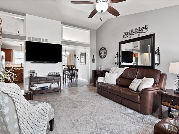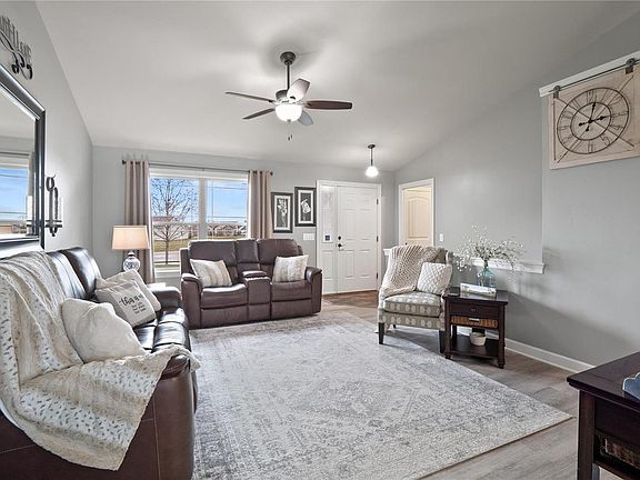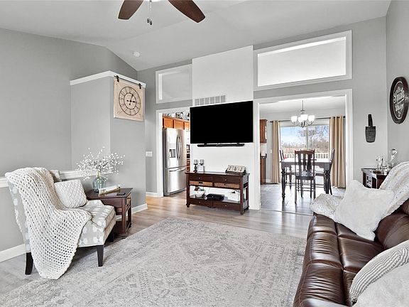 Better than new!!! This 3 bed/2 full bath home has so many upgrades!! Backs to farmland. New Carpet, New Paint, new luxury vinyl plank, new maintenance free deck, gorgeous 2 panel arch doors with upgraded black handles and hinges throughout, vaulted family room and eat in kitchen.  Kitchen and dining room have custom casement openings into family room with shiplap wall, main floor Laundry/mudroom.  open stair case to walk out lower level with sliding doors and full size windows just perfect for finishing.