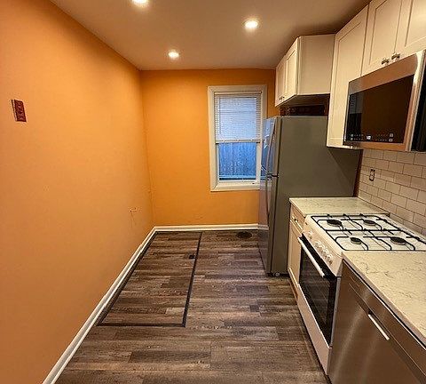 Cute as a button! Just completely redone 2 bedroom unit with new kitchen, new appliances, new central air, new closets, new bathroom, new everything. The unit is very private with a cute back yard backing the Radnor trail. Excellent school district, walking distance to Wayne restaurants and the library. The 2 bedrooms are spacious and have their own closets. Owner pays for water. Renter is responsible for gas and electric. One month deposit required. Minimum contract 2 years. No smoking inside.