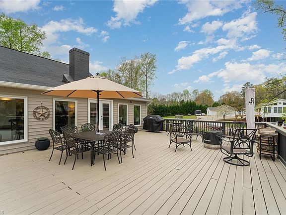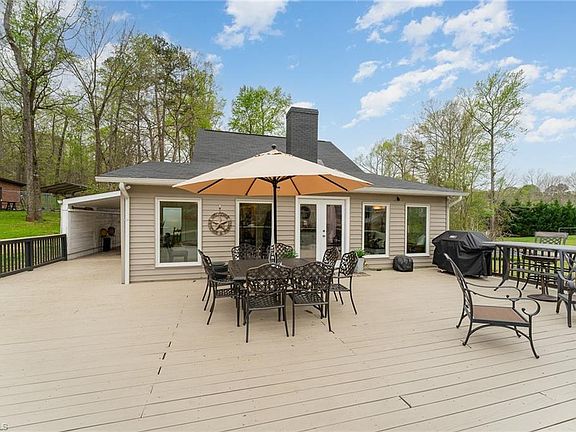 Are you ready for Lake Life? This adorable lake cottage could be yours just in time to enjoy the lake all summer! Located on a quiet cove at High Rock Lake, this 3 bedroom 2.5 bath home is the perfect place to unwind. Whether you are using this as your primary residence or a weekend/summer get away, you will enjoy gorgeous sunrises from your deck every morning! On the main level is the primary suite, half bath and laundry nook in addition to the kitchen and den. There's also a sunroom with a gorgeous wall of windows that show off the lake view! Upstairs, 2 additional bedrooms separated by a jack and jill bath are waiting for your special touch! See the attached list of MANY updates that have been made to this home, including new roof, windows, heat/AC, workshop and the addition of the massive deck that is perfect for entertaining! From the deck, walk down the stamped concrete path to your own private floating dock. This oasis feels secluded but is only minutes to town!