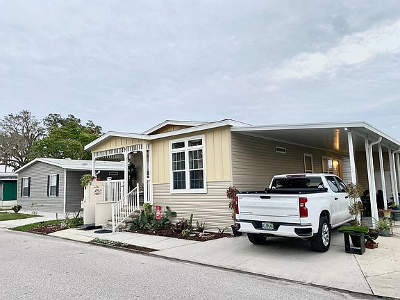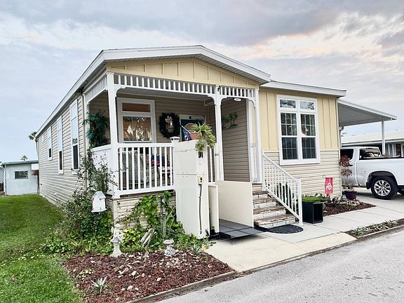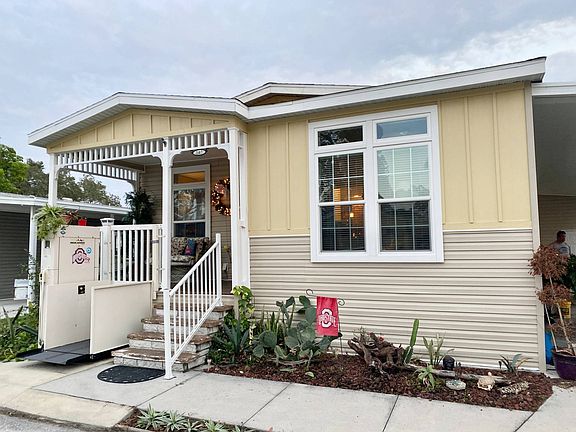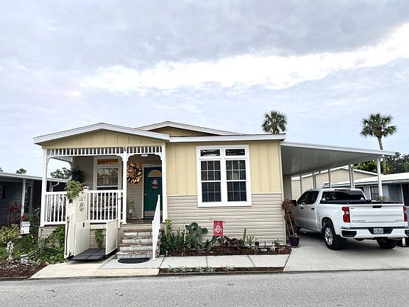 Just Reduced $166,900 Partially Furnished Picture yourself in a great community with planned daily activities, close proximity to restaurants, shopping and the gulf beaches. Style and upgrades abound throughout this beautiful quality 2017, manufactured home. This home features 1,352 sq ft of indoor living space with 3 bedrooms and 2 bathrooms. Open concept living at its finest with a large island in the kitchen to comfortably entertain guests while you cook and host. The kitchen features laminate countertops, beautiful wood cabinets with crown molding, black whirlpool appliances, large stainless sink and pendant lights over the island. This kitchen has ample counter and cabinet space. Architectural upgrades throughout, crown molding, recessed lighting, window dressings, and vinyl flooring. The living room is open with plenty of room to entertain. The laundry room is centrally located for convenience and tucked away by two bi-folding doors. The bedrooms are great sized with closets. The outside has a private driveway and carport with a storage shed. Relax on your front porch and enjoy your Florida lifestyle! Settle down without having to settle for less! Call today to make this your Florida Dream Home. Colony Cove is an age qualified (55+) five-star resort community of manufactured/mobile homes. The "Cove" boasts 5 clubhouses, 6 heated pools, a riverfront pavilion, and private fishing pier, a private marina, a fenced dog park (very pet friendly), tennis, shuffleboard, new pickleball courts, 2 new fitness rooms, 24-hour patrol, clubs of every interest, and much more. There are daily planned activities throughout the park. Bottom line, if you get bored here, it's your own fault! The lot rent in Colony Cove is based on the home's location. While the monthly lot rent may not be the lowest around, it's by far the best value for the money. Not only does the monthly rent cover all of the amenities of the community listed above, but it also covers almost all other monthly expenses such as water, sewer, and trash pickup. All property taxes, lawn maintenance...pretty much every monthly expense except electricity and internet. The current lot rent on this home is estimated at $954.23 per month. All listing information given to us is considered appropriate and reliable but we always recommend home inspections by independent companies who have a background and thorough understanding of manufactured homes. We cannot guarantee the accuracy of the information given to us or the home's condition. Lot rents are determined by the community office, not our company.
