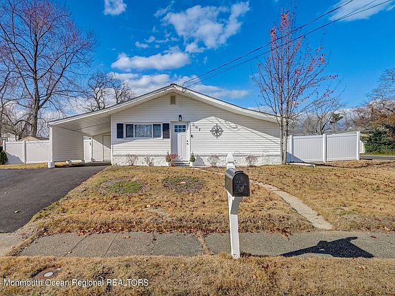 This renovated 3 bedroom ranch has a gleaming brand new kitchen with quartz counters, custom cabinetry w/soft close, new ceramic flooring, new flooring throughout entire home, brand new vinyl fencing, a new electrical panel, new doors, a new double-wide driveway too. Open concept the minute you step into the new front door. This home even has a bonus, bright sunroom. This corner lot is just two blocks up the street from Sunshine Park where there is the very popular soccer tournaments, skate park, fitness stations and running path. Just two minutes to the parkway, Rt 18 & Jersey Shore Hospital. An ideal location in Monmouth County being so close to all the beach towns. Home Warranty Included to cover all systems for first year of ownership.