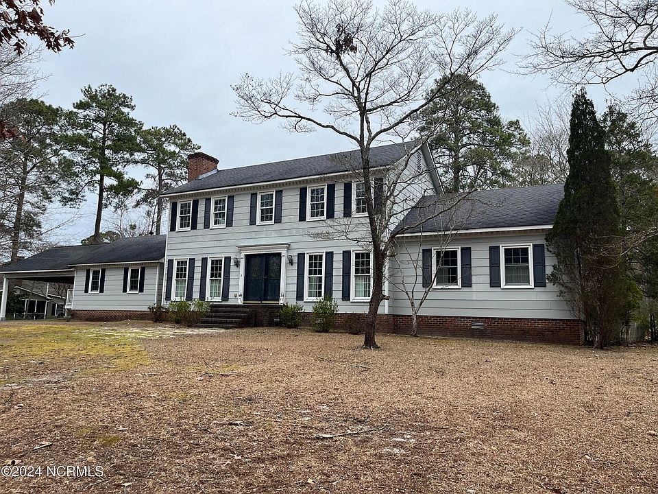 Grand family home out from town and above the flood plain but only 2 minutes from the river, the country club, marina and golf course, and 10 minutes from picturesque and vibrant downtown Washington NC. This is a 4 bedroom 3 1/2 bathroom home with just over 3100sf. It has a spacious downstairs primary suite that was an addition 20 years ago and another primary suite upstairs. This house has great features and needs some TPC on cosmetic interior areas and some deferred maintenance in other areas but can quickly be brought back to its glory and then some.