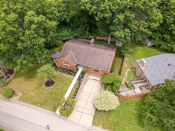 COMPLETELY RENOVATED, LOVINGLY MAINTAINED, STUNNING 3 bed/2.5 bath RANCH on a WOODED, CUL-DE-SAC lot in a PRIME LOCATION! Quick access to I-376, 15 min to Downtown/PGH Airport. Oversized 2-car garage w/nature stone floors includes workshop or 3rd car tandem. Outdoor entertainment space galore w/covered front porch, 2 wood decks, covered aggregate patio! ENTIRE HOME HAS BEEN UPDATED... kitchen, bathrooms, electric, concrete walkway, doors, floors, lighting, retaining walls, some windows, decks, & more! Open-concept kitchen, family & dining rm w/ refinished hardwood fl. DREAMY Kitchen w/gorgeous cabinets, 8’ island, granite tops, SS appl, backsplash & a quaint breakfast nook leading to a 12x8 side deck. Expansive Living rm w/ custom-built-ins that opens to a 16x20 deck. 1st-fl owner’s suite w/walk-in closet & private bath w/walk-in shower. Finished game room w/wood-burning stone fireplace, 1/2 bath, laundry rm, & tons of storage leading to the outdoor patio, firepit & backyard oasis!