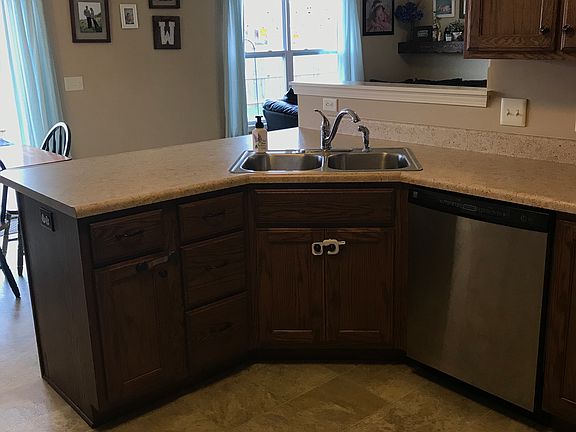 Newer stone and vinyl ranch featuring custom oak cabinets, chamfered ceilings in living room, open concept floor plan, stainless appliances, rounded drywall corners. Upgraded lighting package, energy efficient mechanicals.