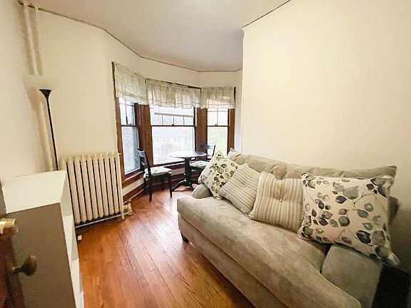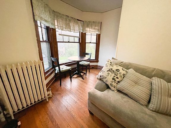 This spacious apt is just a 10 minute walk from the Cornell Arts Quad. Hardwood floors and antique woodwork throughout make it quite unique. Huge bedrooms. Living room could be used as a 4th bdrm. 12 month lease starts Aug 3 2022. Price includes heat, water, snow removal, furnishings, and off-street parking. Electric & gas and wifi paid by tenants. Coin op washer/dryer in building. Pet-free.