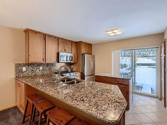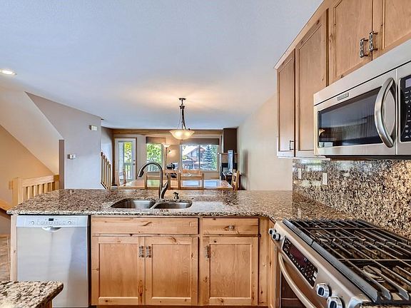 Terrific location! This END unit has 3 bedrooms and tons of privacy, Updated kitchen with granite counters and high end stainless appliances. Remodeled baths with tiled walk in showers and granite counters. 2.5 baths and tandem two car garage. Two decks off the front with mountain views and a patio on the back with hot tub and forest setting. Walk to the Raven golf course and hiking trails in summer and x country skiing in winter. Centrally located for access to world class skiing.