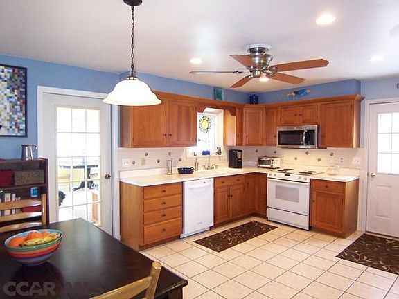 Delightful Cape Cod in desirable Boalsburg provides a perfect start to home ownership. You'll adore hardwood and tile floors with welcoming, sun-filled spacious rooms. Pleasant eat-in kitchen features a tile back splash and access to a cheerful three-season sunroom, perfect for entertaining and relaxation. Enjoy the warmth of the wood-burning fireplace and sunshine from the expansive bay window gracing the living room. The main floor also offers an updated full bath and two bedrooms. Find two additional bedrooms on the upper level along with a full bath. You'll value the additional space in the lower level recreation and family rooms. Also notable: one-year home warranty, brick pad/flue in lower level for wood stove, back yard patio, tranquil water pond, garden, grape arbor and storage shed. Nearby parks, restaurants and shops, Boalsburg, is known for its historic significance, small town charm, laid back vibe and fun festivals.