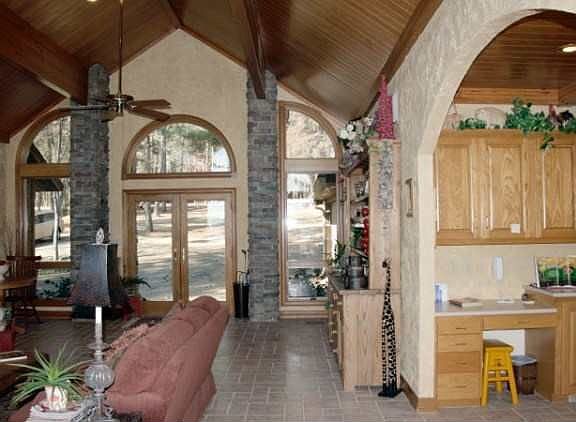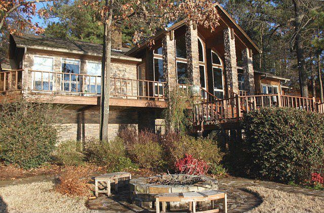 Remarkable waterfront cedar & rock home is located in the prestigious gated community of Kings Country at Lake Cypress Springs. This home was custom built, on 2 main lake lots having 200 Ft of waterfront. It has a tremendous view, facing east giving you incredible sun rises and cool afternoons. With 3 bedrooms, 2.5 baths, & boathouse/deck, decks, Anderson windows & doors, 2 living areas, office w/view, 2 car cedar lined garage with floored attic.The open kitchen has a large eat-at island, walk in pantry, sky light, refrigerators & view of the lake. The master bedroom is separated & has it's own great view, sitting area, large bath w/separate shower & tub. The gathering room has vaulted ceilings, custom windows, hand-toweled walls, massive stone fireplace, tile floors, furniture comes w/house (exception are posted in house), also includes wake boat with low hours and in great condition. The grounds are landscaped with rock fire pit at the waterfront, sprinkler system, & cement drive.