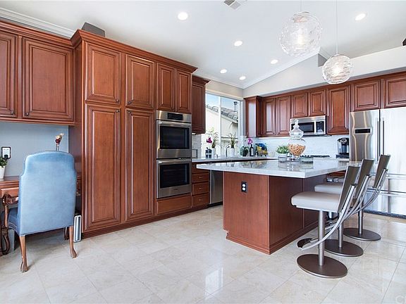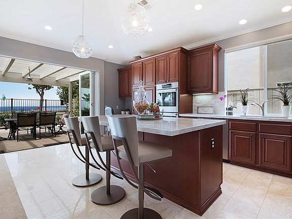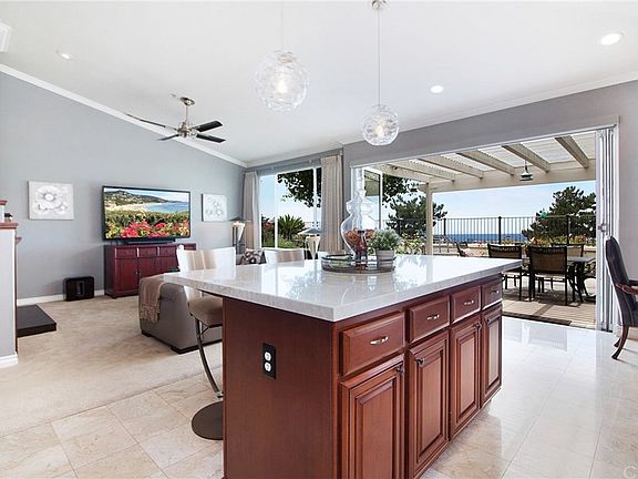 Luxurious Single Level Ocean View Home! Captivating Catalina Island, Dana Point Headlands, Dana Point Harbor, and endless sunset views don't go unnoticed here. Enjoy amazing coastal breeze and sunsets everyday! This highly desirable J.M. Peters open floor plan is 2265 sq. ft. There are 4 bedrooms, one is currently being used as an office and it has two bathrooms. The vaulted ceilings and spacious rooms make this a very comfortable home. The fully retractable doors in the kitchen offers easy indoor/outdoor entertaining. This sophisticated home has been upgraded with so much. The kitchen has all new stainless steel Bosch appliances including double ovens, kitchen island with extended counter for seating, new countertops, new lighting and window coverings. The Travertine bathrooms have new vanities and countertops and glass shower enclosures. All bedrooms have custom built in California Closet cabinetry, mirrored closet doors, and Master bedroom has an extra large walk in closet. The three car garage has plenty of storage and epoxy covered flooring. Plus, this home has new window treatments, new LED lighting, new painting, ceiling fans in all rooms, separate laundry room, large patio cover, grassy and private yard, wired for security, low HOA, no Mello Roos, close to schools, parks, shopping, dining, hiking and biking trails, transportation and no interior steps. This is an absolutely beautiful home centrally located in the Harbor View community of Rancho San Clemente.