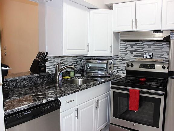 All new Refrigerator, stove, toaster oven, washer and dryer included. Kitchen completely renovated in 2016 with appliances, backsplash, granite counters, cabinets, sink, garbage disposal, lights and blinds. Living room renovated 2016 with new white brick overlay, new hearth with tiles, all new tile floor through first floor, new chandelier, lights and outlets. Complete painted job throughout in 2016. New Hardwood stairs, new bathroom tile, toilet, vanity, sink, lights & outlets. The electric is approximately 100.00 per month, summer or winter. Wood burning fireplace. Dogs allowed. Close to the commuter rail, walking/jogging trails, dog park, and ferry to Boston. Close to the pond for your recreational use. Easy access to highway as well as shopping. Move in condition.