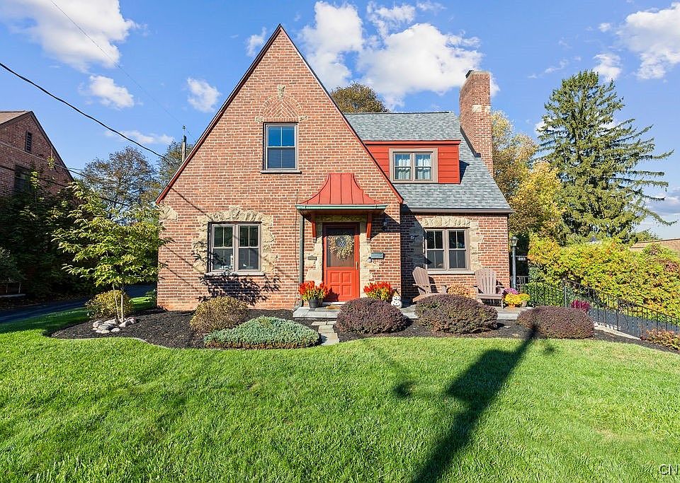 Step back in time with this beautifully preserved 1930’s brick Tudor located in the heart of Dewitt in the Orvilton neighborhood— where timeless charm meets modern comfort. This storybook home's exterior showcases gorgeous architectural details, from its distinctive metal roofline to the elegant brick and stone work that has stood the test of time. The exterior is framed by lush landscaping, a beautiful stone paver patio, a charming stone retaining wall, and colorful flower beds that make for a warm first impression.