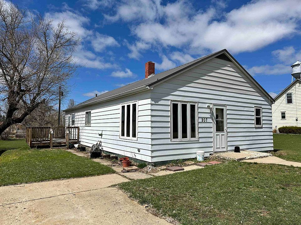 The convenience of everything all on one level! This 3 bedroom/1 bath is located in Drake, a rural town in central ND. It has metal siding, a metal roof and a 10x16 deck! The front door opens up to the living room, with laminate flooring that flows into the remodeled eat-in kitchen. The cabinets have been replaced along with the beautiful countertop! A large refrigerator remains for the new owner. Just past the kitchen is where you will find the laundry and the back door leading you onto the deck. In the backyard there is a small fenced in area next to the shed and a fire pit pad. On the north side of the home are three good-sized bedrooms, with hardwood flooring, and the full bathroom with a pedestal sink. The partial basement has the newer water heater, furnace, breaker panel, and fuel oil tank. It is also internet-ready! All windows, except for two, have been updated to vinyl. Property is being sold as is. Please schedule your viewing today to see how this property could work for you!