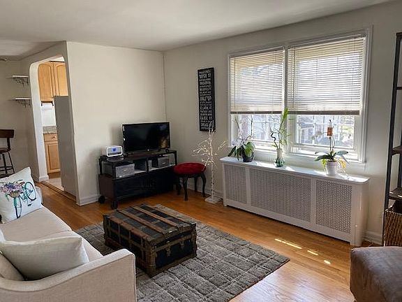 2nd Floor, End Unit located in highly sought after Kahlcrest Condominium Complex. Apt is painted a neutral color with Hardwood Floors throughout. Convenient Location/Commuter's Dream! Featuring a combined Living/Dining area, an updated kitchen, newer AC unit & newer carpeting on stairs. Conveniently located around the corner from the train station offering easy access into NYC. Cranford's vibrant downtown w/ Starbucks, cafes/restaurants, parks, walking/bicycle paths, movie theatre & shops are just steps away. Coin operated laundry facilities in complex. Plenty of parking with private, shared parking lot for the complex. RENT INCLUDES HEAT, WATER & TRASH REMOVAL. Tenant pays for gas for cooking, electric & cable TV. No Smoking. Pets considered -Restrictions do apply. Tenant pays 1 month Realtor Fee. NTN Tenant Screening Required.