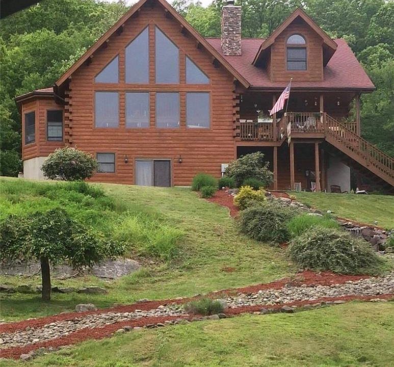 SPECTACULAR VIEWS & PRIVACY Await You At This Wonderful House Providing Serenity and Tranquility! This Unique Custom Log Home Provides Open-Floor concept with Pearl and Beam Ceiling. Beautifully situated on 4.1 acres with amazing views from both inside and outside of your home. Meticulously maintained House Features Italian Stone Tiled Floors, Anderson double paned windows, Whole House Central Air Installed in 2020 and Heated 2 car garage. Open-concept Interior is Bright & Airy and Surrounded by Windows to Bring Nature Indoors. Amazing home for year-round living and entertaining where you can indulge in area orchards, wineries, breweries, one-of-a-kind shops on Main Street, drive-in movie theater, golf courses, hiking on the Appalachian Trail, farmers' market, skiing, and so much more! Huge back deck! Beautiful Property is Highlighted With Custom Waterfall Feature. Parking for several cars. Schedule Your Appointment Today.