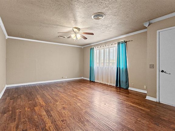 Flexibility is the key to this well cared for home centrally located in Weatherford, OK. The 3rd bedroom is currently opened and was used as a Formal Dining but still maintains its original closet making it an easy conversion back to Bedroom 3 OR use the garage enclosure as an additional Bedroom / 2nd Living / Game or Playroom. Beautiful wood floors throughout with a large living room with crown molding and the perfect picture window to show your Christmas Tree off in front of. Light and bright Eat-in Kitchen with tile flooring, updated counters, stainless appliances, & painted cabinets plus pantry with trash compactor. Bedrooms are nice size with good closet / storage space. The Owner's Suite has a large walk-in closet with double entry, and an adjoining updated Bath with tile shower. Glass doors lead to the covered patio with rear entry driveway to covered parking. New roof in 2017. BONUS: 12 X 10 storage building for gardening & holiday storage space. Quiet street with very little traffic, and no homes directly behind the property adds to the privacy of the great location.