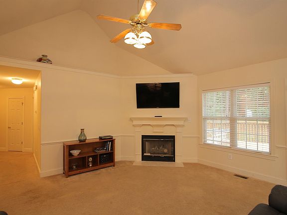 - Living Room: Fireplace, Molding, Ceiling-Vaulted, Ceiling Fan