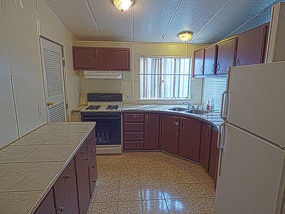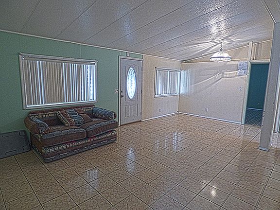 Lot’s of potential, some remodeling done but some TLC and a bit of work makes this a great family home. The bonus room has been enclosed as a 4th bedroom. Tile floors throughout. Appliances stay with the home, washer, dryer, range, refrigerator. Split bedroom floor plan has the master on one side and the other bedrooms at the other end. Walk in closet in the master and spacious bath with newer vanity and tiled shower. There’s a very large enclosedporch with a separate bonus area, 2 storage sheds, yard space, grassy front lawn, fenced and carport. Lot Rent: 560/mo | Includes: Sewer