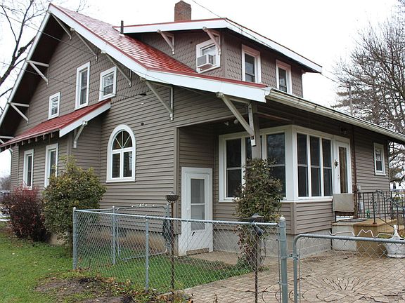 Bring back yesteryears sparkle with your vision to make the old world charm in this 4 bedroom home shine thru. The entry welcomes you to an open stair case, french doors to the living room featuring the built in book cases & china hutch in the formal dining room, hardwood floors & several other features with the original woodwork that needs help restoring it to yesteryears gleam. Main floor bedroom with spacious closet & 3 more up, main floor bathroom & 1 full up, office closet with builtins. Kitchen was updated in years past, room for dinette table. Block foundation, a great surprise in a home. The exterior is redone from vinyl siding, metal roof & almost all updated windows throughout. A garage made with tree timbers shows historic value. Seller home Inspection to review prior to showing
