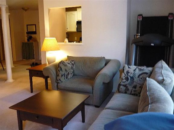 CAREFREE CONDO LIVING! No more shoveling, mowing, or painting exterior. Well kept one owner condo w/ open airy floor plan.3rd bed.set up as office. Master bedroom features private sink & vanity area separate from main bathroom. Very low utilities & taxes. All appliances incl. Frig 07,dish.06,micro- wave 04. Separate utility rm./laundry room. Lovely grounds with pond & gazebo. Garage #3 first building on right. STAR sav.$483.74. Excellent Condition