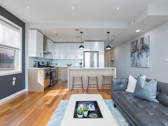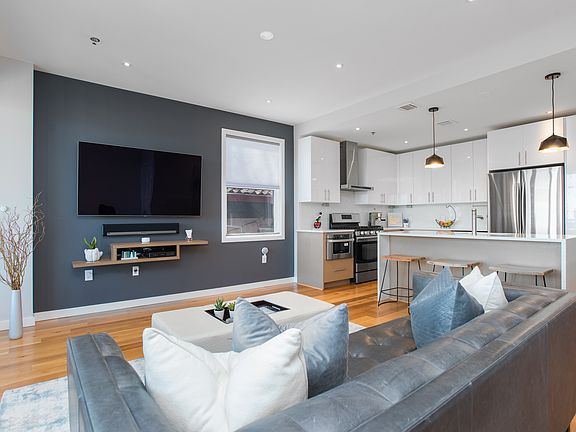 Posh perfection and privacy! Boutique style living in this incredible full concrete elevator building on secluded Manhattan Ave. Sitting on top of the Palisades Cliffs this spacious open floor plan provides sweeping NYC views, 3 bedrooms, 2 bath, custom finishes and upscale amenities. Living/dining room with floor to ceiling windows, drenched with natural light, sliding doors to private terrace, fully equipped kitchen with designer cabinets, top of the line appliances, quartz galaxy counter tops with waterfall center island complete your living quarters. Master bedroom suite with wall to wall California style closets, en-suite bath with large vanity, mosaic marble flooring, subway tile, stand up shower, generous size 2nd bedroom, 3rd bedroom/home office with built in murphy bed and office desk. hardwood floors throughout, laundry room, central air/heating, pet friendly, 1 outdoor car parking. The main living room features smart blinds, which can be controlled via Alexa, Google Home, or downloadable smart phone app. In addition to this smart home offering, there are smart light switches, fast charging USB power outlets, Google Nest security system, and August locks. One block to NYC bus minutes to Midtown, close to light rail, parks, restaurants, shops and Trader Joe's, the perfect place to call home.