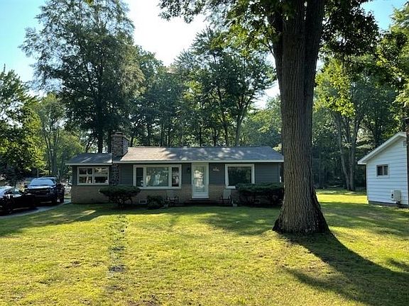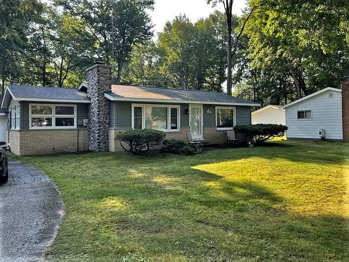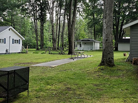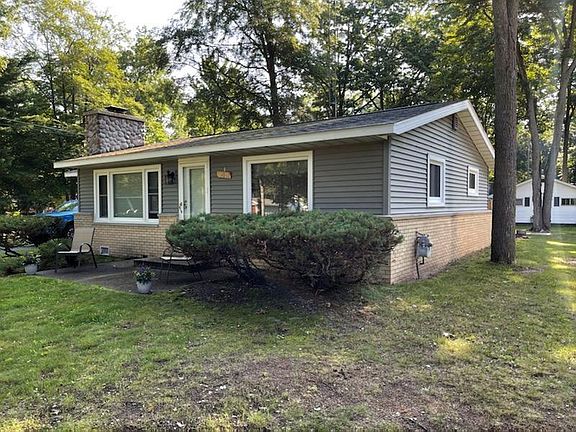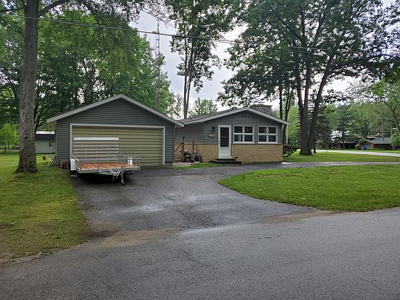Charming home/cottage situated in a peaceful subdivision with lake access across the street. Beautifully maintained knotty pine interior offering 2 spacious bedrooms, 1 bath (recently renovated), stone fireplace in living room, retro kitchen and additional family room that can be utilized for additional sleeping quarters. Detached garage provides plenty of storage for toys. Backyard has concrete shuffle board pad, firepit and lots of yard space, great for children and pets to play. Circular drive offers convenient access to and from home as well as plenty of parking! Great year-round home or vacation getaway! Call for your private tour today!