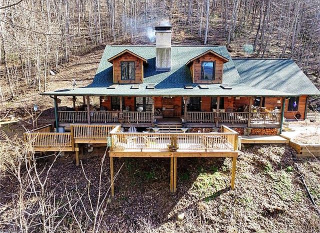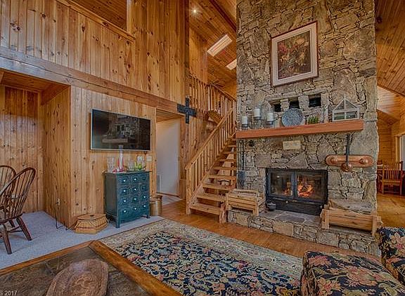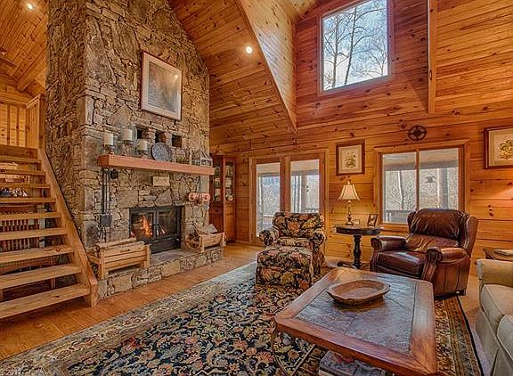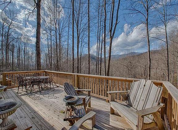 Great location in Balsam! One-of-a king log home with view!!Floor to ceiling Rock fireplace/w/woodstove insert, wood floors,Wonderful kitchen w/top/line appliances. Open floor plan w/skylites! Huge living area on main floor!Upstairs is large, lovely master, open loft w/view & a media/bonus rm.Private lot,w/oversized garage & lots of parking area.Outside is a wonderland of open & covered decking, lush landscaping and a beautiful view! This is one to see!Heat Pump & roof replaced in 2014.