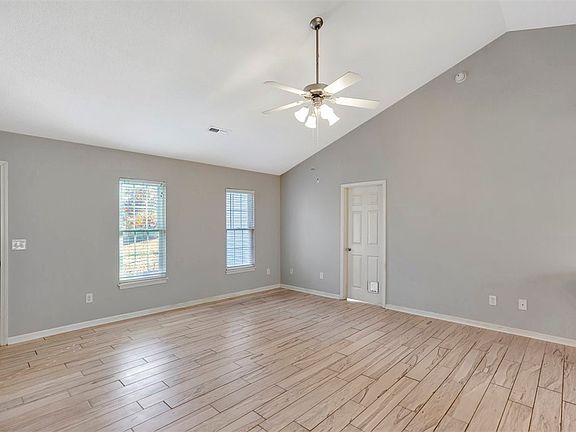 - Ceiling Fan(s), Cathedral Ceiling(s), Jetted Tub, Laminate Countertop, Bath in Primary Bedroom, Main Level Primary, Pull Down Attic Stairs, Separate Shower, Cable TV, Walk-In Closet(s), Walk-In Shower, Window Treatments, Workshop