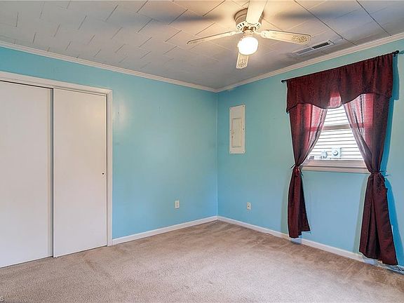 This home features one level living and a large, flat back yard! The front door opens to spacious living room with large window, ceiling fan and arched door way. Adjacent to living room is a large den with brick mantel fireplace. This room is open and leads into the large eat in kitchen. Next is a full laundry room with shelving. Bedrooms sit on the left side of the house. Carport keeps your car covered and provides extra storage. Deck off the carport. Replacement windows throughout. Convenient location!