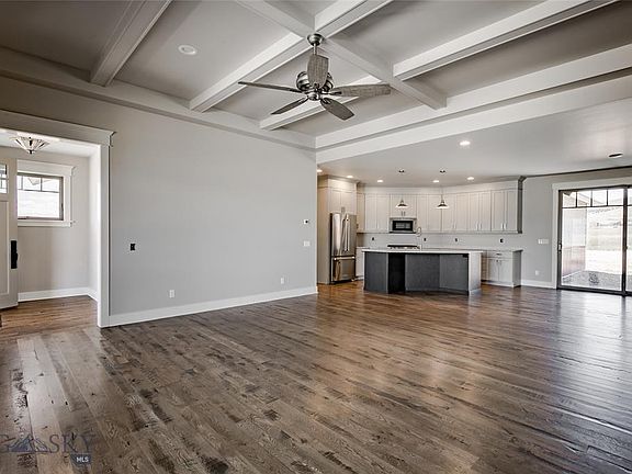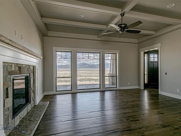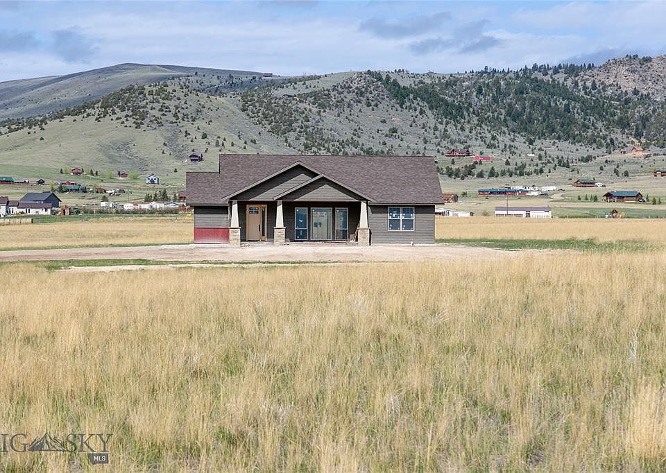 New home on large 4.36 acre lot in Pronghorn Meadows. Three bedroom/ three bath 2150 SF home with stamped concrete patio. The floorplan lives and entertains well. The stainless steel appointed kitchen with a gas stove and an island is open to the living room with a custom coffered ceiling. Skip planed white oak floors and stone fireplace add a light Montana touch. Dark toned vertical grain fir doors and wide trim provide a quality accents. Master bedroom looks out to the Madison Range has a walk-in closet plus 2 extra closets to store off season items. The master bath has a large tiled shower and a water closet and tiled floors. The guest room has a full bath ensuite. The full size laundry with cabinetry is near the 785SF garage and a pantry is just around the corner from the kitchen. Lots of attention to detail in this home with a low maintenance exterior.