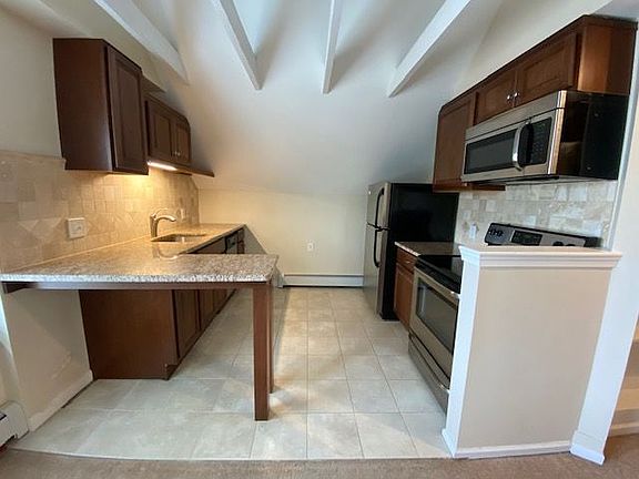 Great location, close to train station, shopping dining and parks! This 3rd floor apartment was tastefully upgraded recently, but the charm and features of the older home we kept intact during the renovation. The apartment features a kitchen equipped with: Granite Countertops, and Stainless Steel Appliances and a Breakfast Bar. The living area is open to the kitchen. The home features a large walk-in closet in the hallway. An updated tiled bathroom and a nice sized bedroom with carpet flooring. There's lots of windows allowing in a lot of natural light and great views. This unit has two entrances, one at the rear of the home and one at the front of the home. There is additional storage in the basement as well as access to coin operated washer and dryer. Off Street Parking. This is a No Smoking Unit! No more than 2 individuals. Pets considered, but pet restrictions apply. All applicants are subject to a background check and verification of income.