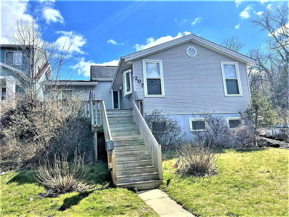 This unique elevated ranch is really for you to customize to your own tastes now! * This ready to move into, 2 bedroom, 2 full bath home also has a lower level family room under front of the house with a walkout to long side driveway* This room could also be used as an additional private bedroom* The elevated entrance door with deck area, has a panoramic street view.* The living room has a cathedral ceiling,fireplace and bay window* Plenty of dining area available in the kitchen and dining room * Main bath is huge! 13 x 9!- ready for you to customize to your needs. All kitchen stainless steel appliances stay* The kitchen walks out to a covered patio, overlooking the yard with a very large patio and /or private parking area* A custom raised flower/veggie bed overlooks the open patio area,for you to sit and enjoy with your evening brew this summer ! Also easycare laminate or original hardwood floors on 1st floor. Take a look soon!