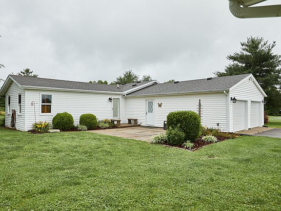 Beautiful well maintained MOVE-IN READY ranch with one acre on quiet road 7 miles from I-71 and 5 miles from Bedford. Priced below appraised value. This 1825 sq. ft. home includes a 24' X 16' family room with vaulted ceiling, large living room, 3 bedrooms and 2 full baths. Kitchen has granite countertops and center island and stainless steel appliances. There is a two car attached garage and 16' x 20' one car garage/outbuilding with 8' overhang. Recent bath & kitchen remodels, replacement windows & doors, energy efficient heat pump & AC 2012, 30 year roof 2005, plus many more updates. MUST SEE and available for immediate possession.