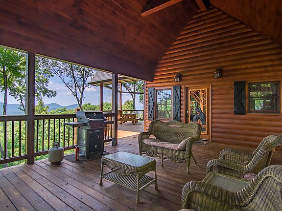 Luxury Above the Clouds! This amazing cabin sits high on the mountain with one of the most amazing views in the area. The lodge style home offers plenty of room for the entire family with three bedrooms, three baths, a sitting area in the loft plus a super-sized rec room with wet bar and mini fridge on the terrace level! This home offers three stone fireplaces including an outdoor fireplace on the covered porch and many other upgrades including, all wood walls and ceilings throughout, hand scraped wood floors on the main and upper levels, tile floors and granite top double vanities in the baths, granite counters and stainless appliances in the kitchen and much more! The cabin offers covered and uncovered deck space and patio areas for outdoor entertaining, complete with hot tub and rocking chairs the perfect place for relaxing! Cabin is being offered fully furnished with high-end mountain furnishings and is already on an established rental program.