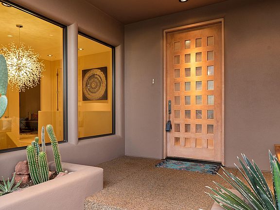 Nestled Against endless miles of National Forest with Stunning view corridors captured from almost every window lies this contemporary jewel. Built with a nod to timelessness, this 4 bedroom pearl drips with luxurious living from its contemporary front glass paned wooden door to its sweeping great room with high recessed ceilings etched with Floor to Ceiling Walls of windows. A Double Sided Fireplace graces the Main Living Room and Master Bedroom which flourishes with a generous bathroom Suite featuring a garden jetted tub, large walk in shower and double closets. Throw Open the Sliding Dining Room Doors to the Outdoor Patio and shear some steaks on the Gas Grill while watching the sun set against the rocks. Outdoor Patio Area is completed walled and adorned with